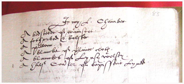 1561 inventory of Ankerwycke rooms, “In my L’s Chambre”