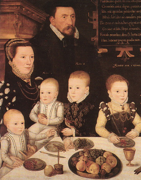 If the Elizabethans were a hardy lot, withstanding the plague, malaria, wars, duels, the little Ice Age, and a diet that, except in summer, consisted of beef, bread and beer, it may be because the harsh treatment they recieved in infancy and childhood eliminated the weakest at the outset.  The death rate among infants and children was so high that it was not unusual for a woman to have anywhere from eight to twelve children in hopes that two or three might live to maturity.  If now and then this meant that so many lived that the parents went bankrupt raising, educating, and marrying them properly, it may have seemed less of a risk to dynastic-minded 16th-century parents than the disaster of leaving no progeny at all.